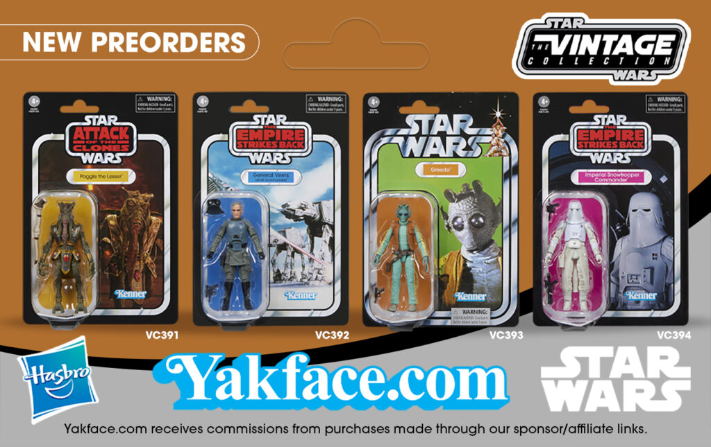 Yakface.com receives commissions from purchases made through our affiliate links. New Vintage Collection preorders are available for preorder via our affiliates Amazon and Entertainment Earth today at 1pm ET. VC391 Poggle the Lesser: Amazon / Entertainment EarthVC392 General Veers: Amazon / Entertainment EarthVC393 Greedo: Amazon / Entertainment EarthVC394 Snowtrooper Commander: Amazon / Entertainment EarthTVC 2026 Wave 8 Case Assortment: Entertainment Earth Read more at Yakface Forums